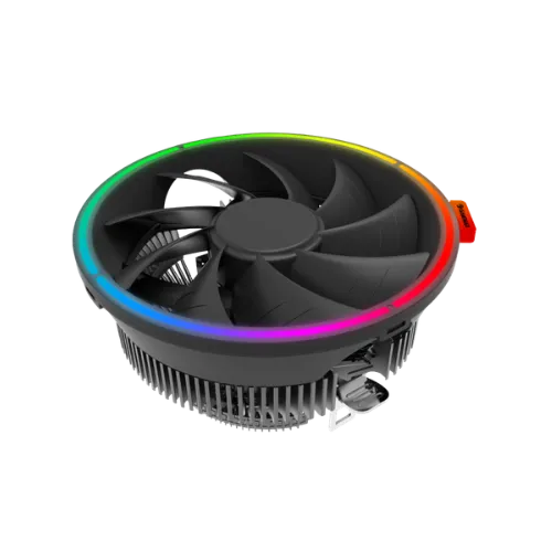 El Gamma 200 RGB CPU Cooler presenta un diseño tipo top-flow que dirige el flujo de aire hacia la placa base, contribuyendo también a la refrigeración de los componentes cercanos. Su base de cobre con tecnología de contacto directo (Direct-Touch Style) optimiza la transferencia térmica desde el procesador hacia las heatpipes y aletas de disipación. Incorpora un ventilador de 4 pines con control PWM, que ajusta automáticamente la velocidad según la temperatura, equilibrando rendimiento y sonoridad. La compatibilidad es amplia, soportando sockets tanto de Intel como de AMD, lo que lo hace versátil para diferentes configuraciones. Además, su iluminación ARGB Rainbow añade un atractivo visual dinámico y colorido, permitiendo sincronizarlo con otros componentes compatibles para personalizar el interior del equipo.