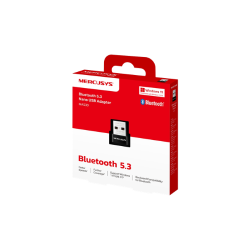 El adaptador USB Bluetooth Mercusys MA530 incorpora la versión 5.3 de Bluetooth que ofrece mayor velocidad, cobertura más amplia, seguridad mejorada y conexión más estable en comparación con versiones anteriores, siendo compatible hacia atrás con dispositivos Bluetooth de generaciones previas . Su diseño nano ultracompacto de 19.15 x 14.94 x 7.19 mm permite conectarlo al puerto USB de la computadora y dejarlo permanentemente sin riesgo de que se golpee o se pierda, ideal para uso en casa u oficina y para transportar en laptops . Utiliza interfaz USB 2.0 y proporciona alcance inalámbrico de hasta 20 metros en espacio abierto, pudiendo conectar simultáneamente hasta 7 dispositivos Bluetooth como auriculares, altavoces, ratones, teclados, impresoras, smartphones y más . Es compatible con sistemas operativos Windows 11, 10, 8.1 y 7 (32/64 bits) con instalación plug and play en versiones más recientes, aunque puede requerir la instalación de controladores desde el sitio web oficial de Mercusys para Windows 7 o después de actualizaciones del sistema operativo . Opera en frecuencia de 2402-2480 MHz, soporta tecnología BLE (Bluetooth Low Energy) para bajo consumo energético y funciona en temperaturas de 0°C a 40°C . Incluye en su contenido la guía de instalación rápida y cuenta con certificaciones CE y RoHS.