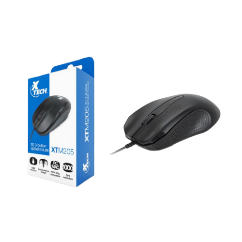 El mouse alámbrico Xtech XTM-165 es un dispositivo óptico con conexión USB tipo A, diseñado para ofrecer precisión y comodidad en el uso diario de computadoras de escritorio o portátiles . Incorpora un sensor óptico con resolución de 1000 DPI que proporciona un seguimiento preciso y fluido en diversas superficies, adecuado para tareas de oficina, navegación web o juegos casuales . Cuenta con 3 botones de presión y una rueda de desplazamiento (scroll 3D) que permiten una navegación eficiente entre documentos y aplicaciones . Su diseño ergonómico ambidiestro se adapta tanto a usuarios diestros como zurdos, con dimensiones de 112 x 73 x 36 mm y peso de 75 gramos . El cable tiene una longitud de 1.25 metros que proporciona flexibilidad de movimiento . La instalación es plug and play, sin necesidad de controladores adicionales, y es compatible con sistemas operativos Windows, macOS y Linux . Color negro y acabado con costados texturizados para mejor sujeción.
